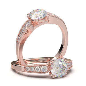 Rose Gold Engagement Ring 1ct Round Diamond Promise Ring Anniversary